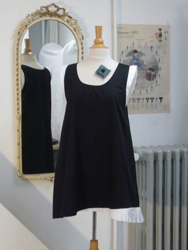 Kleid aus Baumwollsatin, weiß abgesetzt an Armausschnitt und Saum