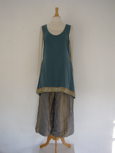 Überkleid aus Seidencrepe mit alter indischer Borteüber weiter Hose aus Doupion