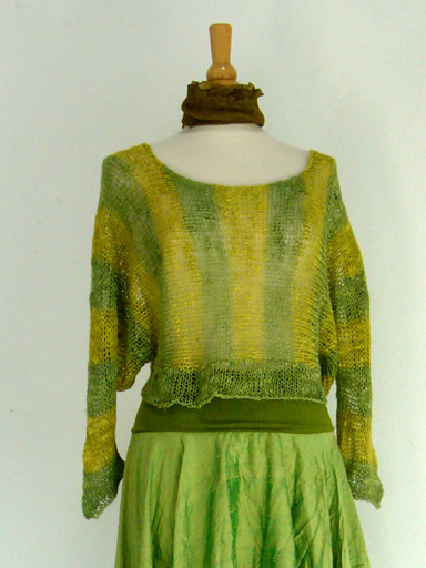Streifenpulli aus selbst eingefärbtem Leinengarn